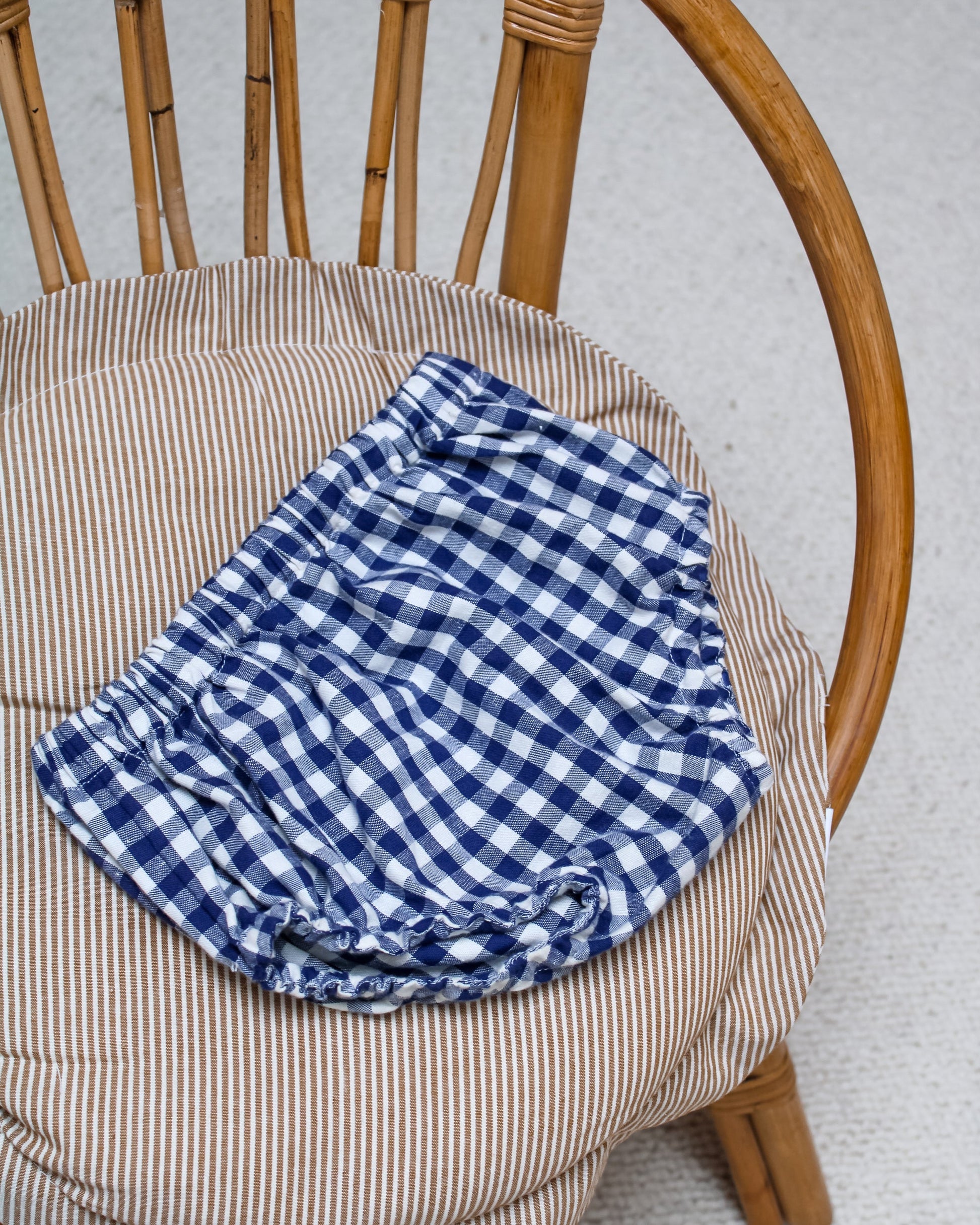 Le bloomer Jacques est confectionné en 100% coton gratté vichy bleu marine. Avec ou sans collants, c'est un intemporel adorable pour nos petits poupons et les plus grands, aussi bien pour les filles que pour les garçons.
