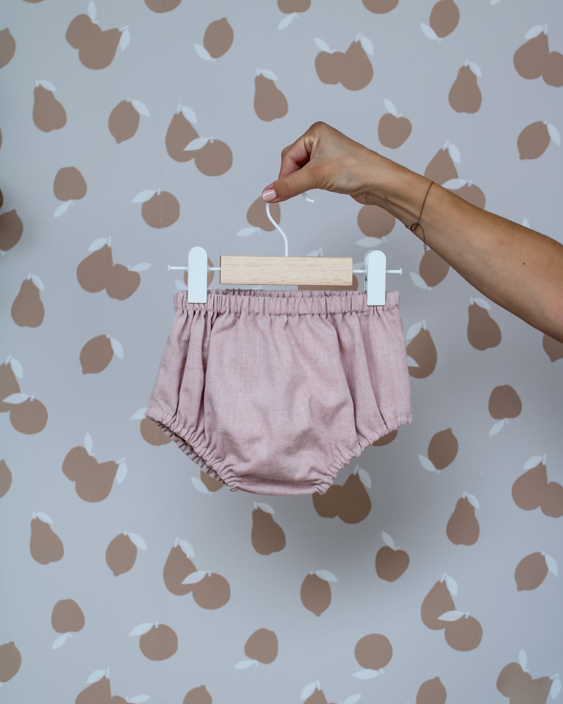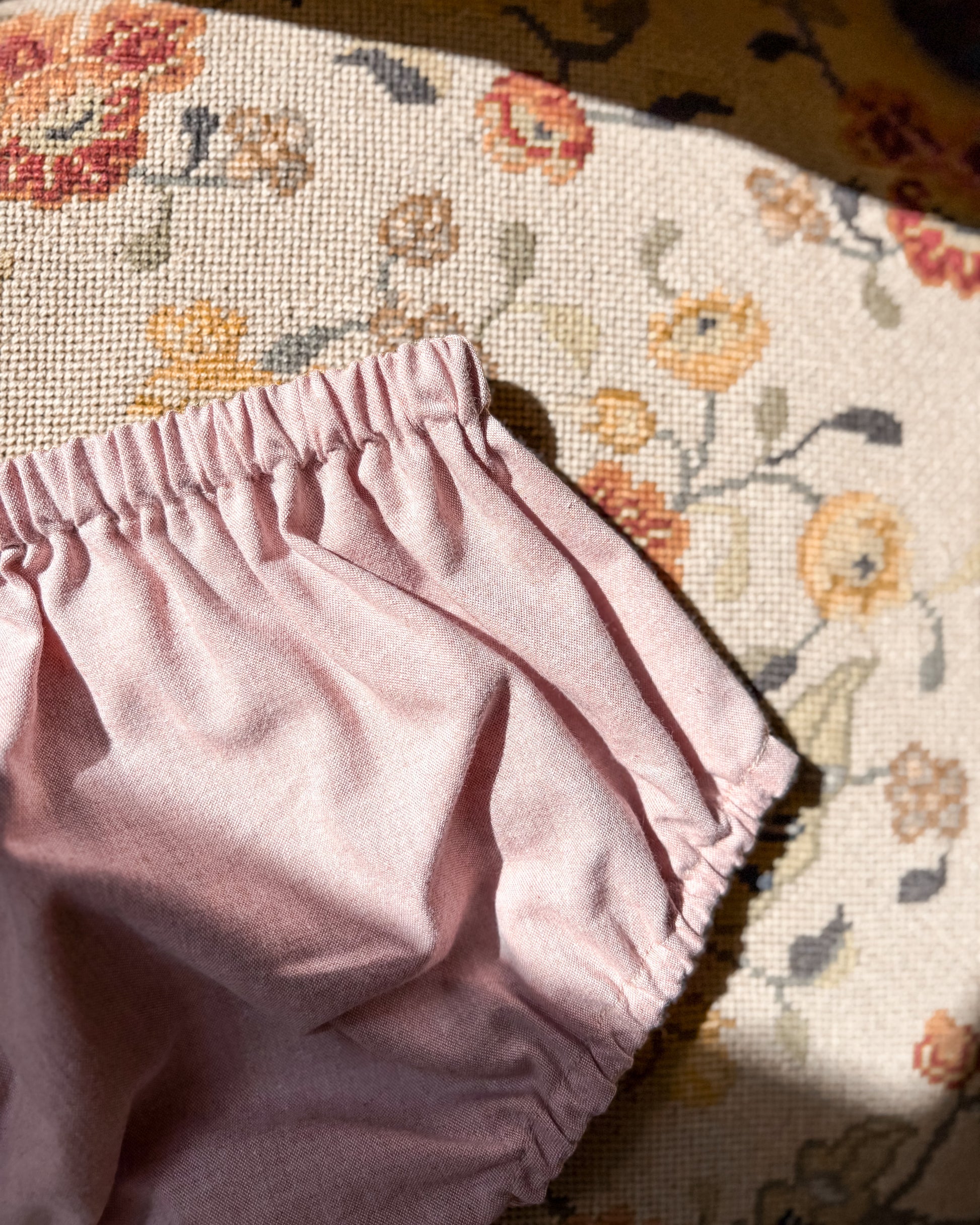 Le bloomer Thaïs est en 100% coton, dans une jolie couleur rose boudoir. Avec ou sans collants, c'est un intemporel adorable pour nos petites poupées.