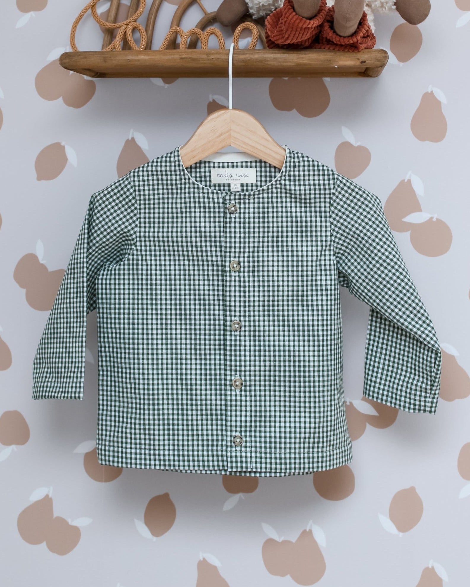 La chemise Côme est confectionnée en tissu 100% coton tout doux. Le détail charmant des boutons écaille se marie parfaitement avec ce joli vichy vert. Un intemporel qui se porte aussi bien sous une salopette qu'avec un boomer.