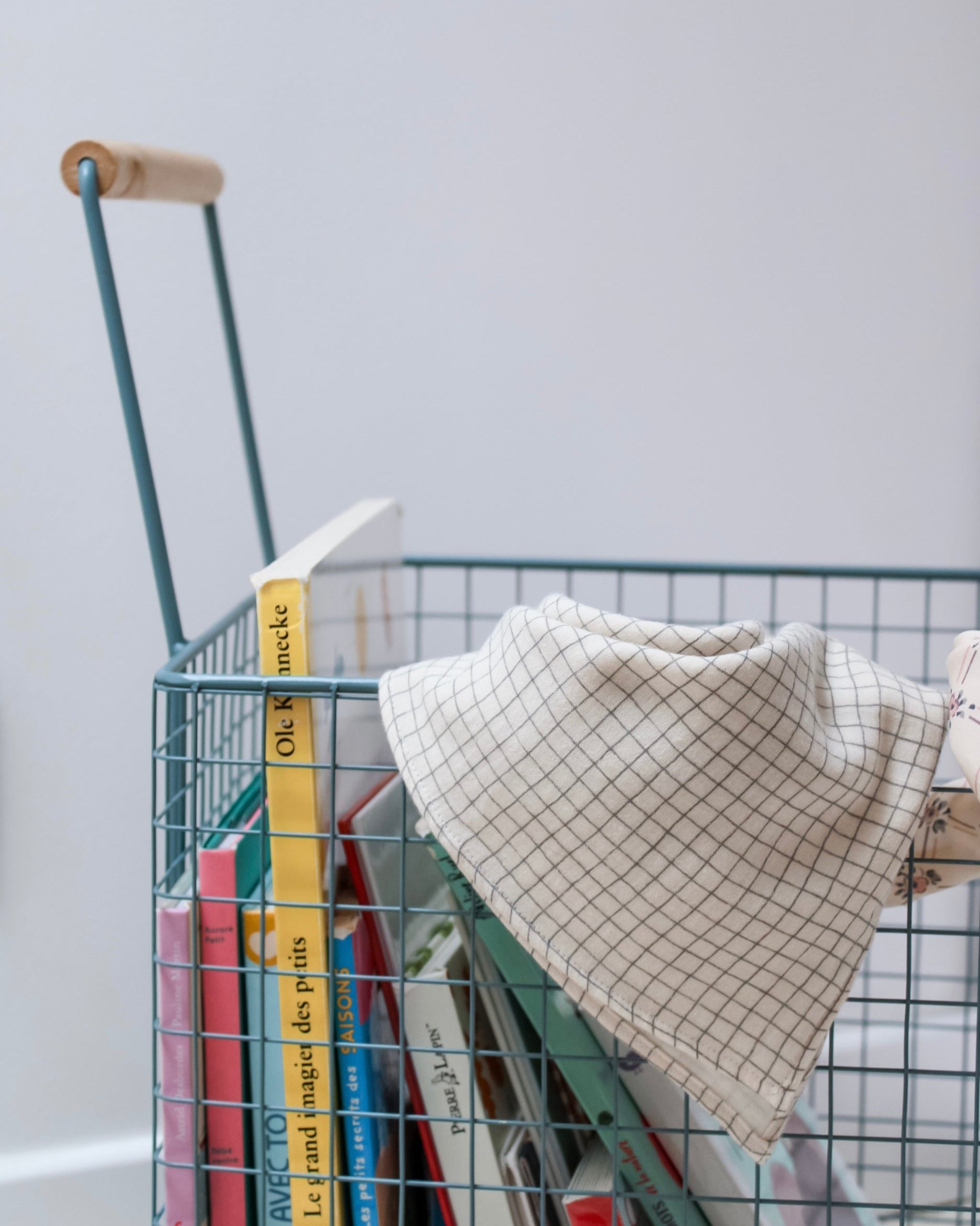 Foulard en gaze de coton 100% organique, beige à carreaux gris anthracite, à nouer autour du cou de votre enfant.