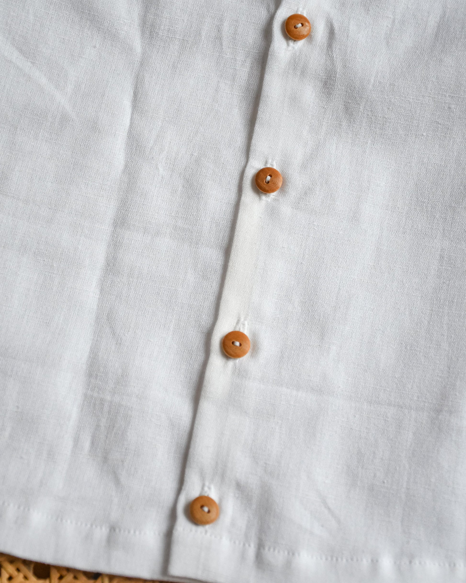 Elle s'attache dans le dos avec des boutons en bois.